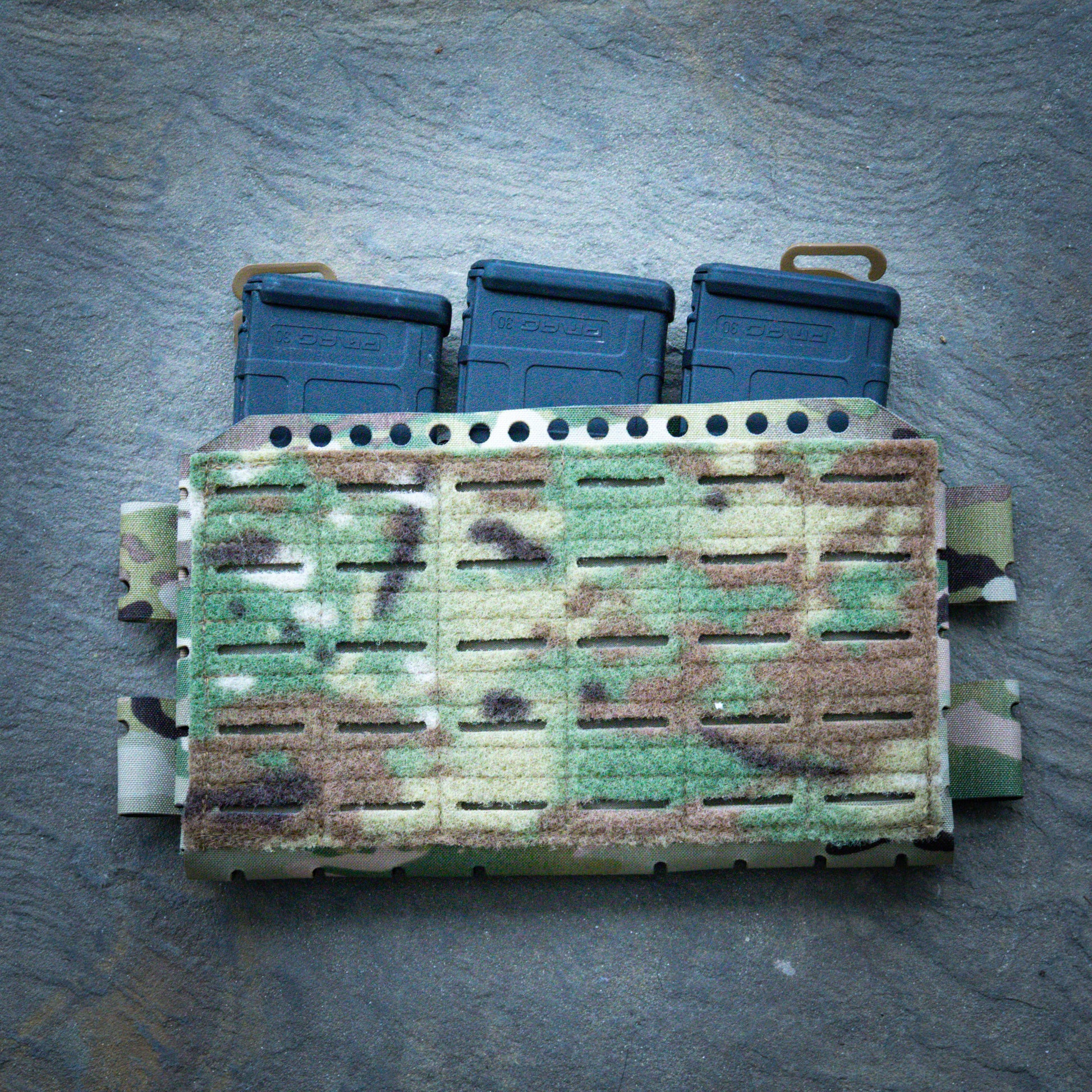 The Micro Rig Placard V2 doesn't reinvent the wheel, but adds a few quality of life improvements and modernizations to the previous design. The first change was making the loops on the side wider to accommodate firstspear tubes and other plate carrier QD buckles. The other feature we added was laser cut molle on the bottom to allow pistol/tourniquet pouch mounting.